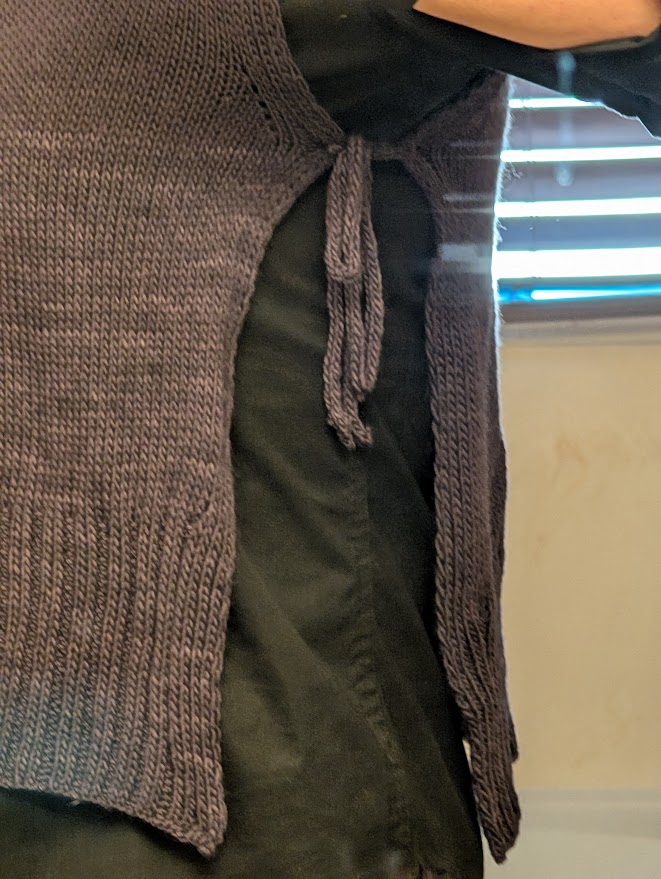 It mostly turned out as expected and I like the fit of the collar. The open sides and breezy fit aren’t what I usually look for but I like it. I think it will be a fun layering piece and I would be excited to try different fasteners under the arms to switch up the look a bit.