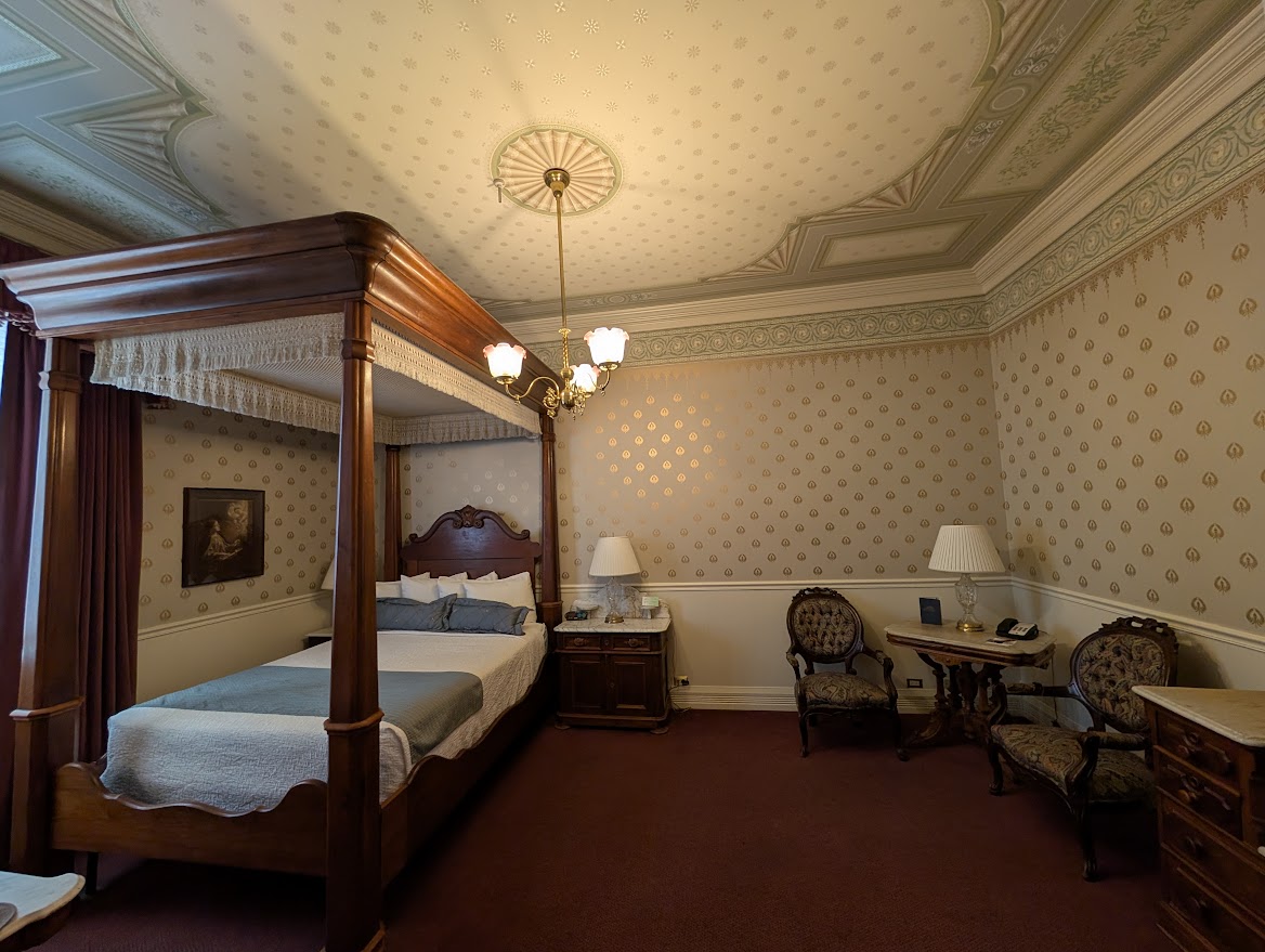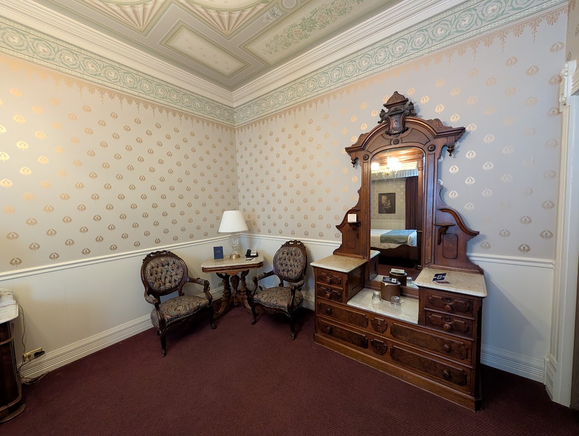 You can also see our gorgeous room in the Strater hotel, full of cool antique furniture. I like that hotel because each room has different furniture and wallpaper. You never know quite what you’ll get and I like the surprise.